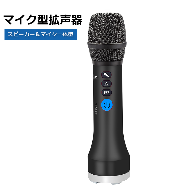 ■商品説明 スピーカーとマイク一体型のポータブル拡声器です。 屋外や人の多い場所でもしっかり届き、音響設備がなくてもこれ一台で声をクリアに拡声できます。 ボイスチェンジ機能で声を変化させることができ、カラオケやイベントをさらに盛り上げます。 スマートフォンやタブレットとBluetooth接続することで、音楽のワイヤレス再生にも対応。 スピーカーから拡声と音楽を同時出力できるため、カラオケマイクとしても大活躍します。 TWS接続で2台同時使用もできるので、デュエットも可能です。 超軽量設計で握りやすいスリム形状なので、長時間握っても疲れません。 講演会、屋外イベント、学校行事、ガイド業務、マスク着用時の声量補助や、高齢者のコミュニケーション補助としてもおすすめです。 ■サイズ:W5cm×D5cm×H19cm ■重さ:約262g ■最大出力:20W ■充電方法:USB Type-Cより給電 ■連続使用時間 ボリューム50%の場合:約4時間20分 ボリューム100%の場合:約2時間10分※連続使用時間は使用条件により異なり