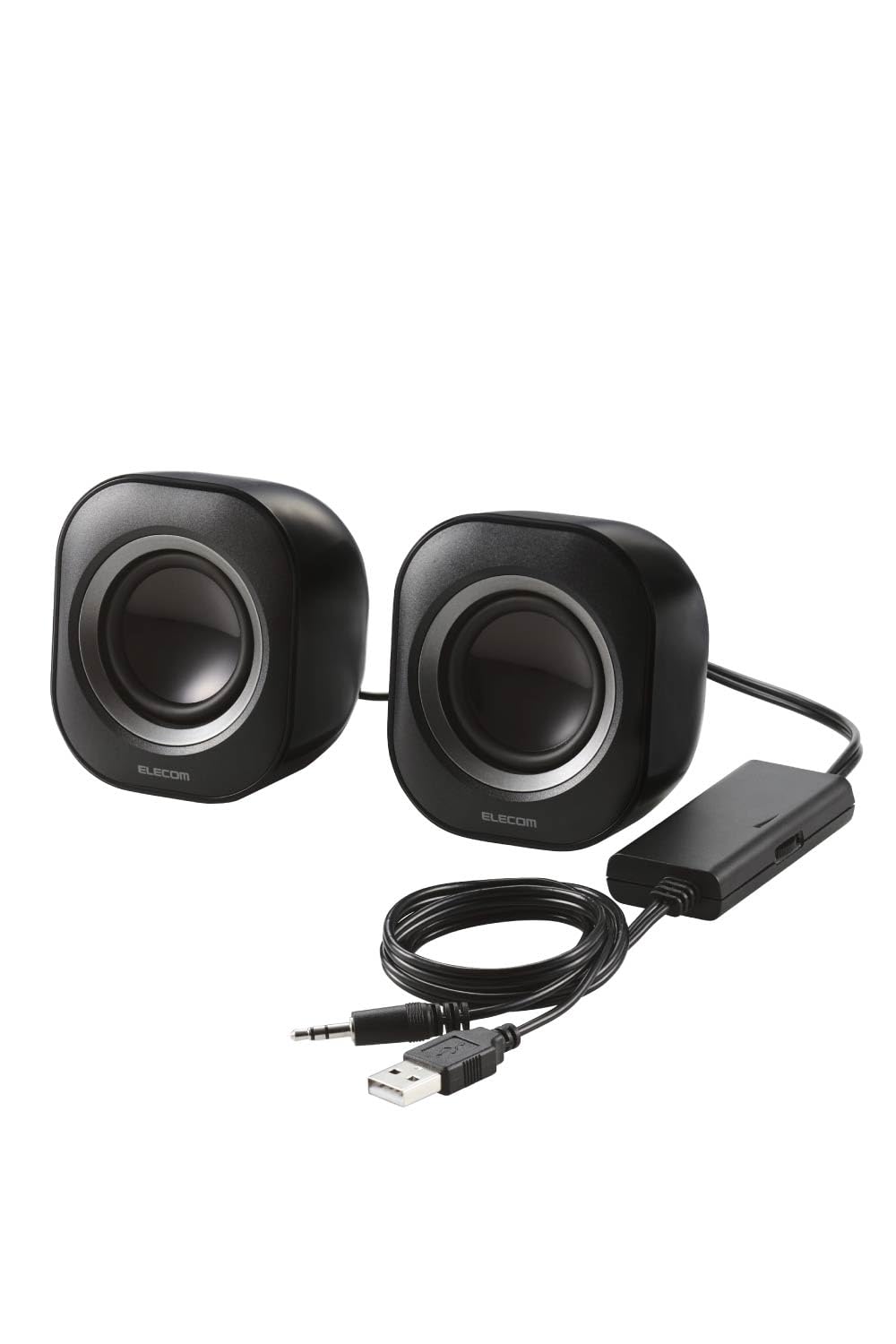 ■エレコム スピーカー USB給電 4W コンパクト φ3.5ミニプラグ接続 ブラック MS-P08U2BK オーディオケーブル イヤホン 3極 3.5mm ステレオ