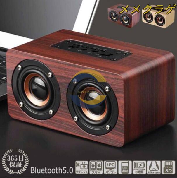 ブルートゥーススピーカー Bluetooth スピーカー 5.0 木製 ウッド 小型 ステレオ ワイヤレス 無線 接続 スマホ タブレット PC モバイル ハンズフリー おしゃれ