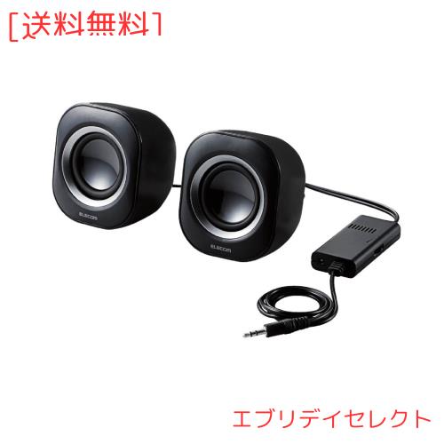 エレコム スピーカー USB給電 4W コンパクト ブラック MS-P08U (ブラック)実効最大出力4.0Wの2.0chステレオスピーカです。パソコンなどのUSB端子からの給電で、ステレオサウンドを手軽にお楽しみいただけます。家庭用電源を必要としないUSB電源タイプです。パソコンのUSBポートに接続することで、手軽にお楽しみいただけます。汎用性の高い3.5mmステレオミニジャック接続の入力タイプなので、パソコンだけでなく様々な機器に接続可能です。φ50mmの丸型フルレンジドライバを採用し、バランスのよい安定したサウンドを実現します。アンプ内蔵で、手元で簡単にボリュームを調整できる「ボリュームコントローラー」が付属しています。電源を供給する機器によっては、ノイズが大きく聞こえる場合があります。ノイズが気になる場合は、他のPCやUSB充電器など別の機器から電源供給をしてください。