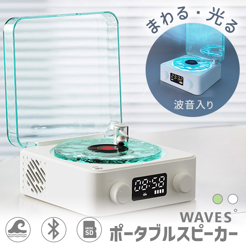 「波の音とゆらゆら波のライトでリラックス♪」レコード風スピーカー~波音入り~●おいておくだけでお洒落♪●回るライトで癒し空間に●スマホからすぐ聞けるBluetooth対応●ライトOFFでも使えます♪