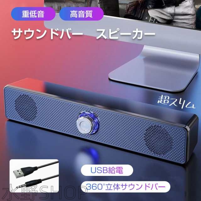 pcスピーカー サウンドバー 高音質 USB電源 有線 スピーカー パソコンスピーカー ステレオ 大音量 小型 コンパクト オシャ