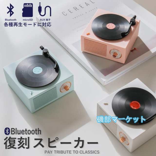 ■最新発売 Bluetooth スピーカー 可愛い レトロ レコード型 コンパクト microSD メモリーカード AUX 5W 動く 限定セール 音量調整 音量調