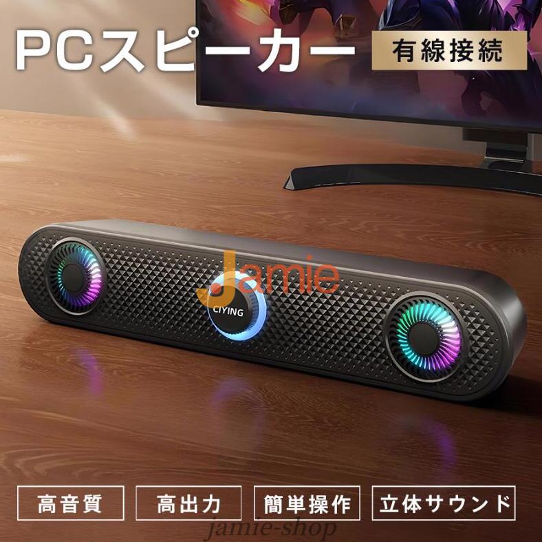 PCスピーカー スピーカー 高音質 USB 有線 小型 ステレオト サウンド コンパクト 大音量 重低音 高出力 卓上 簡単操作 パソコン スリム