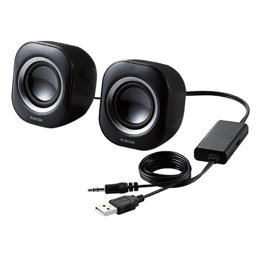 ■エレコム スピーカー USB給電 4W コンパクト φ3.5ミニプラグ接続 ブラック MS-P08U2BK