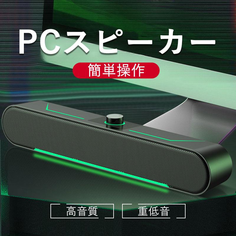 スピーカー USB 高音質 PCスピーカー サウンドバー パソコンスピーカー 有線 LED スリム 小型 コンパクト 簡単操作 ゲーム 自宅 おしゃれ
