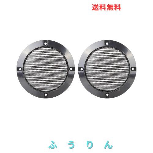 ■uxcell スピーカーグリル 艶やかなオーディオスピーカーカバー メッシュサブウーファーグリル プロテクター メタル ブラック 2個入り 4イ
