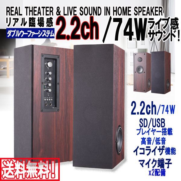 ■2.2chパワーサウンド重低音マルチスピーカーシステム74W(ウーファー USB SDカード マイク端子 MP3 ライブ 高音)