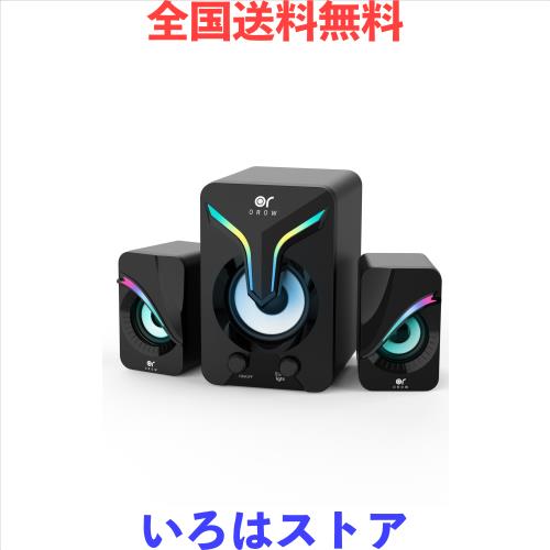 ■OROW PCスピーカー 2.1ch サブウーファー スピーカー RGBライト付き11W usb pc スピーカー pcモニタースピーカー テレビ パソコン用スピ