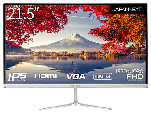 ■JAPANNEXT [JN-IPS215FHD] 液晶ディスプレイ/21.5型/1920×1080/HDMI×1、VGA×1/シルバー/スピーカー:有/2年保証