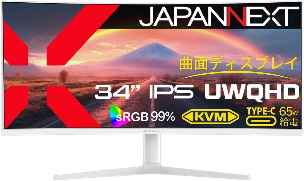 ■JAPANNEXT ジャパンネクスト UWQHD対応 34型ウルトラワイド曲面ディスプレイ(IPS/Type-C65W給電/スピーカー/2年保証) JN-IPS34Q-HC6-W