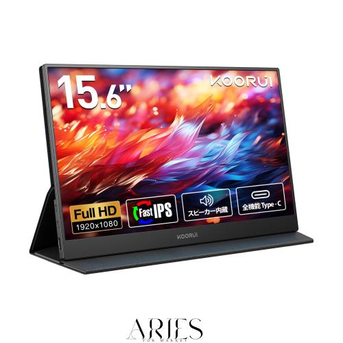 ■KOORUI モバイルモニター 15.6インチ FHD(1920x1080) Fast IPSパネル スピーカー内蔵 ポータブルディスプレイ 薄型 軽量 持ち運び便利