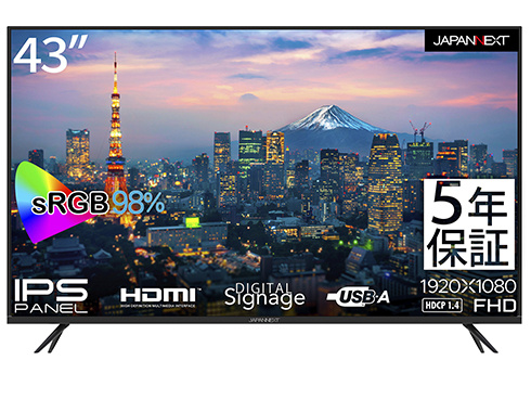 ■JAPANNEXT [JN-FHD43IPS-H5] 液晶ディスプレイ 43型/1920×1080/HDMI×3、USB×2/ブラック/スピーカー:有/5年保証 [PSE認証済]