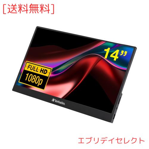 ■Verbatim バーベイタム モバイルモニター 14インチ フルHD 1080P (ゲーム機/PC対応/HDMI/Type-C/スピーカー付/メーカー2年保証)