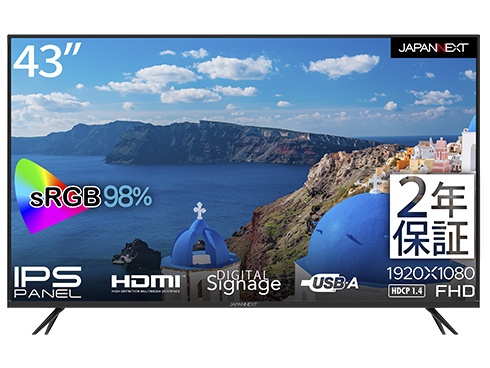 ■JAPANNEXT ジャパンネクスト 商品は軒先渡し フルHD対応43型液晶ディスプレイ(IPS/HDMIx3/USBx2/スピーカー/3年保証) JN-IPS43FHD2-U-H3