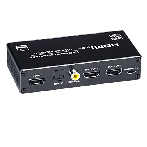 ■BLUPOW 4K60Hz・HDR対応 HDMI分配器 1入力2出力+音声分離機同軸・光デジタル・3.5mmステレオ音声出力 HDCP2.2 H