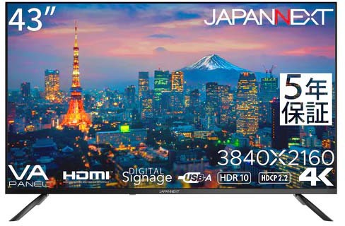 ■JAPANNEXT ジャパンネクスト 商品は軒先渡し 4K対応 43型液晶ディスプレイ HDMI×3/スピーカー/5年保証 JN-V43UHDR-U-H5