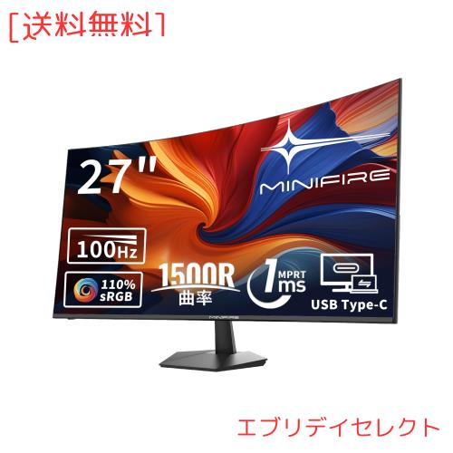 ■Minifire モニター27インチ 湾曲モニター 100Hz USB Type-C 1500R曲面 スピーカー内蔵 Adaptive Sync FHD 300cd/?輝度 16.7万色 8Bits V