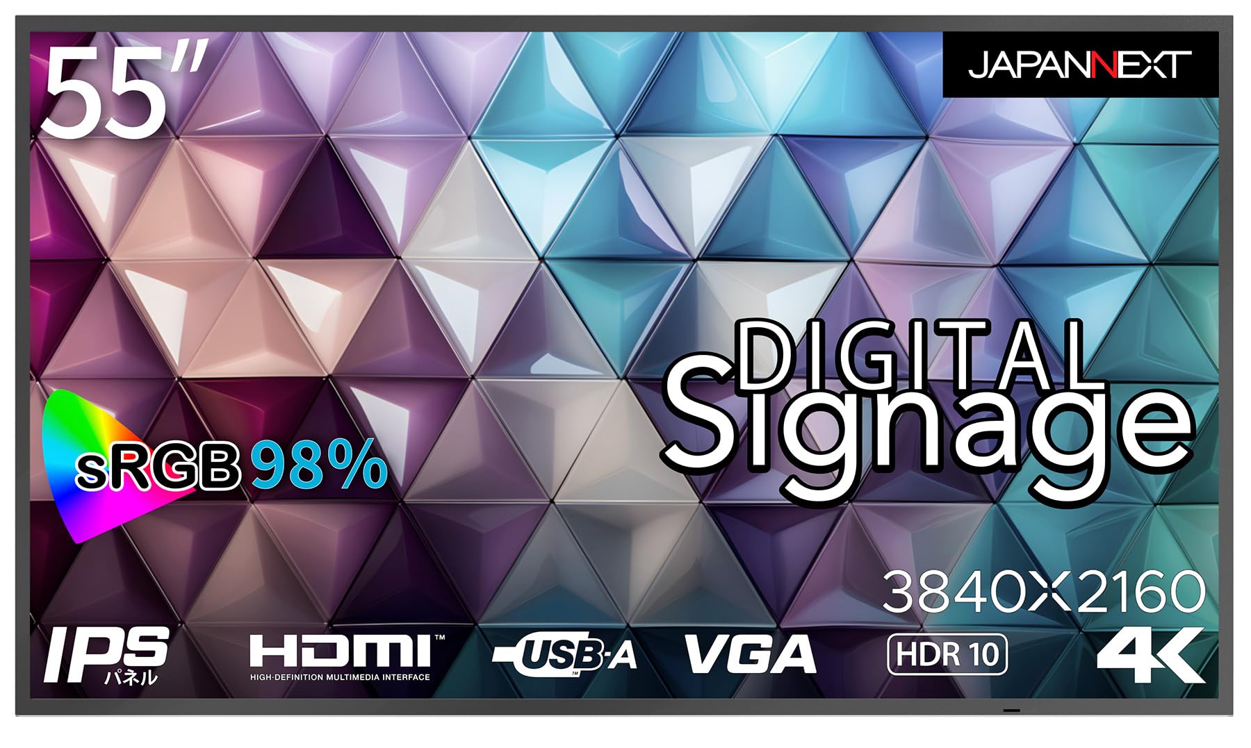 ■【3年保証モデル】 JAPANNEXT 55インチ 大型 モニター 4K UHD 3840x2160解像度 IPS ディスプレイ デジタル サイネージ (HDMI/スピーカー