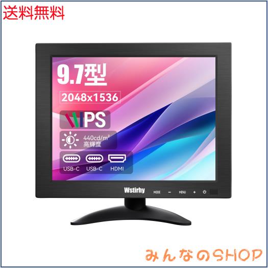 ■Wstirhy 小型 モニター 9.7インチ 2048×1536 IPSパネル, USB-C×2/HDMI接続, 440cd/m?, 178度視野角, VESA 75×75mm, 内蔵スピーカー付