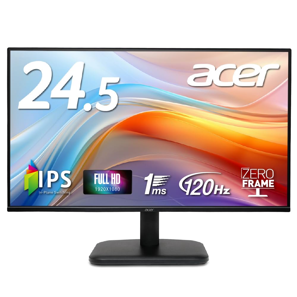 ■Acer モニター 24.5インチ フルHD 非光沢 IPS 120Hz 1ms(VRB) sRGB 99% AdaptiveSync HDMI 1.4 ミニD-Sub 15ピン スピーカー・ヘッドフォ