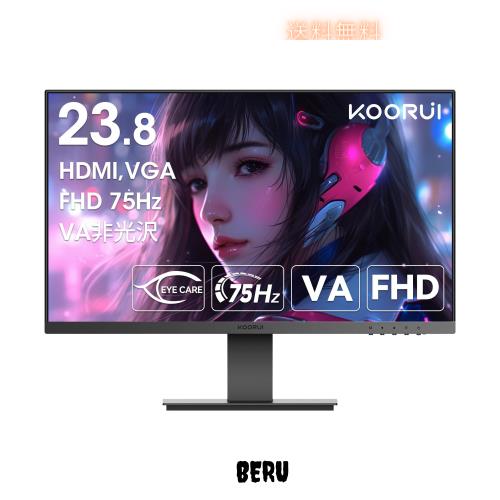 ■KOORUI モニター 24インチ VA 非光沢 フルHD pcモニター 5ms 75Hz ディスプレイ HDMI VGA 傾き調整 広い視野角 スピーカー非搭載 24N1A