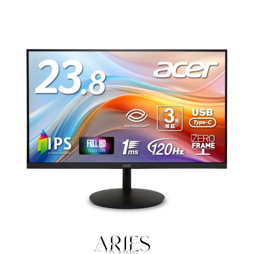 ■Acer モニター 23.8インチ フルHD 非光沢 IPS 120Hz 1ms(VRB) AdaptiveSync HDMI 1.4 Type-C・65W給電対応 スピーカー・ヘッドフォン端子