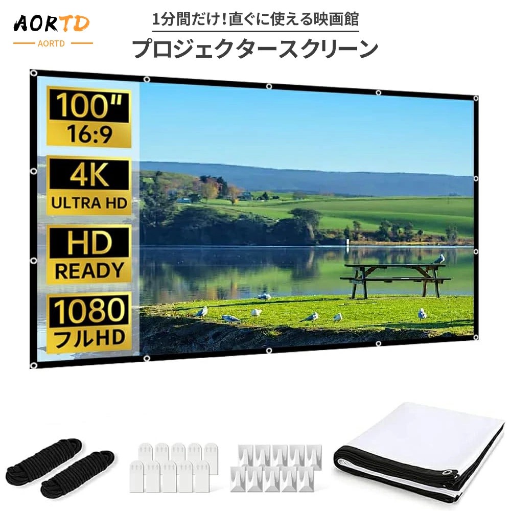 ■AORTD プロジェクタースクリーン ホームシアター スクリーン 持ち運び 軽便 84インチ 100インチ 16.9 視野角179° 両面投影 フルHD 4K解