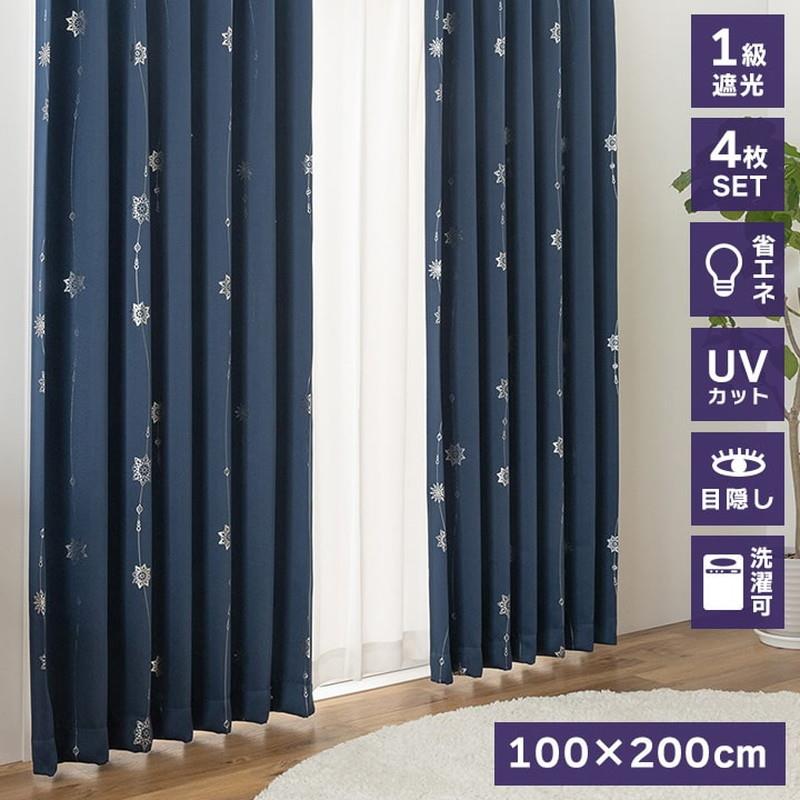 ■商品説明 ●1級遮光のドレープカーテン2枚とレースカーテン2枚がセットになった商品です。 ●落ち着いた色味と綺麗な結晶の柄がお部屋を彩ります。 ●遮光1級ですので、夜勤が多い方、お子様のお昼寝、ホームシアターにお役立ち! ●レースカーテンにはUVカット70%以上の機能がついてますので、光を取り入れつつも気になる紫外線をカットできます! ●ミラー効果もあるので、日中外から室内が見えにくく、防犯・プライバシーの確保も出来ます。 ●断熱・保温効果により、暑い夏でも寒い冬でも節電に効果的です。 ●アジャスターフックも付いていますので、すぐにお使いいただけます。 ●洗濯機での洗濯が可能なカーテンなので、お手入れも簡単です。 ■商品詳細 サイズ:幅100x丈200cm カラー:ネイビー 組成:ポリエステル100% レース付き 原産国:中国製 洗濯表示:洗濯可(洗濯ネット使用) ※掲載写真は出来る限り実物の色に近づけるよう加工しておりますが、撮影環境やお客様のお使いのモニター設定、お部屋の照明等により実際の商品と色味が異なる場合がございます。ご了承ください。