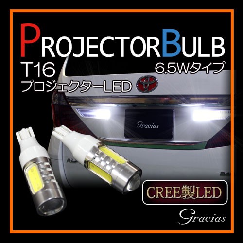 ■国産12V車用 T16 プロジェクター LED 6.5W ホワイト LEDバルブ 電装 内装 LED ランプ インテリア LE16P-01 gracias グラシアス