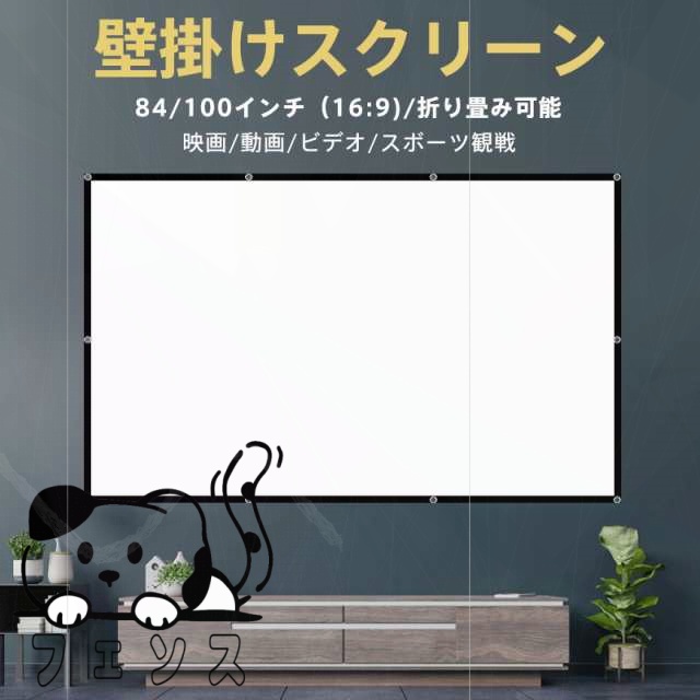 スクリーン 持ち運び便利 壁掛け式 ビジネス 軽量 84インチ プロジェクター 100インチ 16:9 家庭用 吊り下げ 大画面