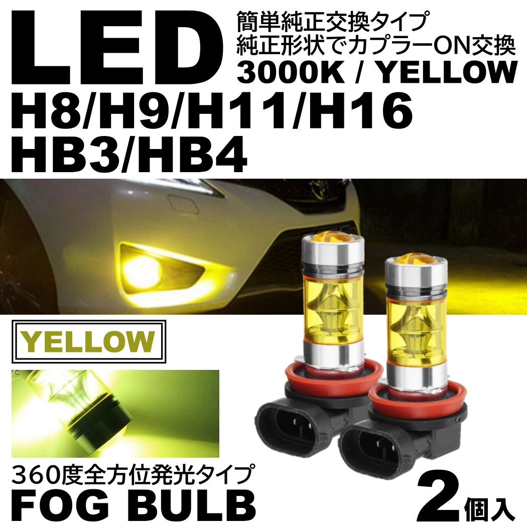 ■高輝度 LEDフォグ 20SMD プロジェクター 3000K 12V H8/H9/H11/H16/HB3/HB4 黄色 LEDフォグランプ 2個SET イエローフォグ