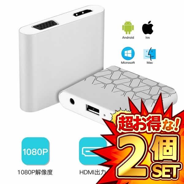 ■2個セット HDMI VGA 変換アダプタ 簡単接続 給電 大画面 プレゼン 会議 テレビ モニター プロジェクター スマートフォン タブレット ゲー