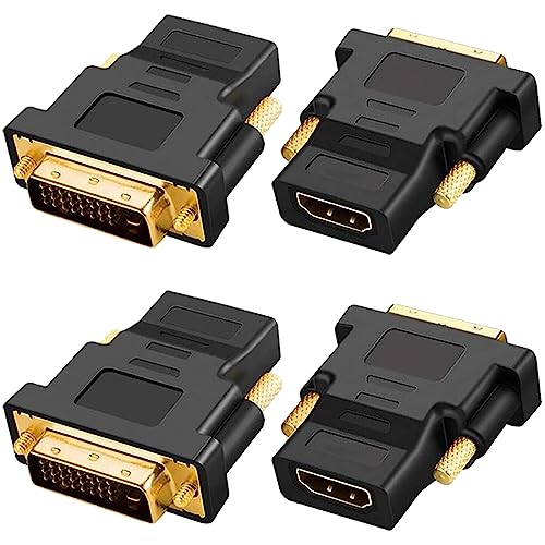 金メッキ HDMI - DVI アダプター 双方向 DVI オス (24 + 1) - HDMI メス変換アダプター (プロジェクター HDTV PC TV PS3 用 PS4 用) (4 パック)商品の性質上、取り付け方法や使用環境、相性に関するサポートは行っておりません。また、商品の使用により生じた如何なる損害・被害も、弊社では一切の責任を負いかねますので予めご了承ください。仕様: 製品名:HDMI - DVI アダプター カラー:ブラック 素材:金メッキメタル&PVC 特徴: 1. 新品、高品質、耐久性があります。2. 使いやすく、プラグアンドプレイ。3. DVI-I (24+5) と DVI (24+1) の両方に対応 4. HDMI オス - DVI メス アダプターは双方向です。HDMI から DVI デバイスへ映像信号を送信でき、DVI デバイスから HDMI デバイスへの映像信号の送信もサポートします。パッケージ内容: 4 x HDMI - DVI アダプター
