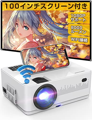■DBPOWER 8000lm WiFi プロジェクター 小型 【100''スクリーン付属】 スマホ直接接続 iOS/Android両方対応 1080PフルHD対応 200''超大画面