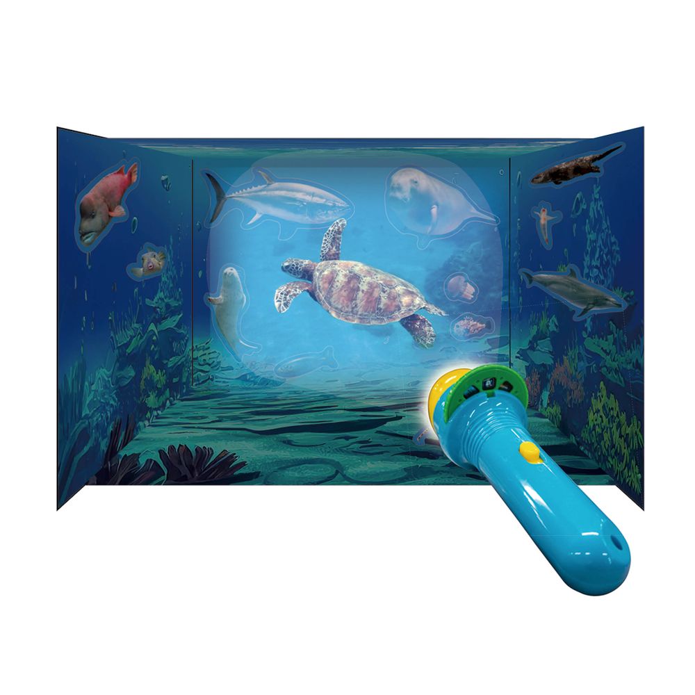 うみのいきものプロジェクターとシールブックのセット大人気のうみのいきものプロジェクターに海の中をデザインしたシールブックがセットになって登場【詳細】セット内容:プロジェクター×1、シールブック×1、シール×1商品サイズ:プロジェクター:本体Φ40×150mm、フィルム:Φ32.6×4.5mm、シールブック:縦420×横585mm(平らに置いた状態)材質:紙、PP[ おもちゃ 一般玩具 室内あそび ]