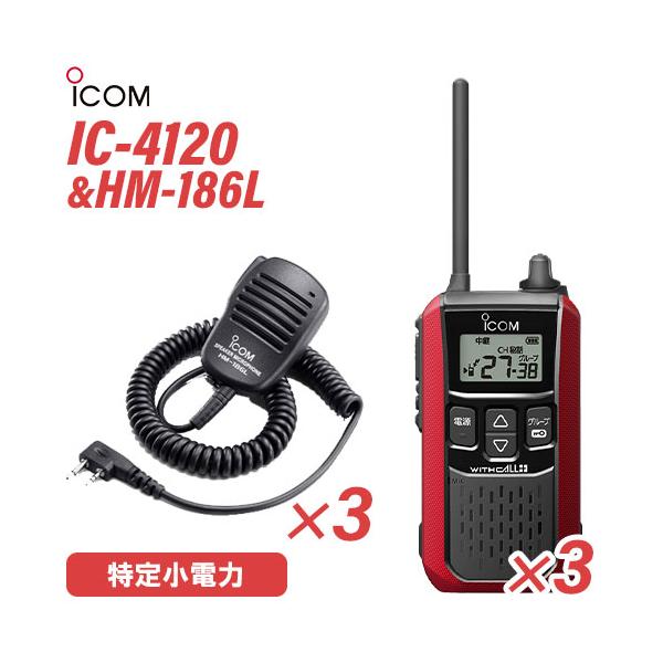 ■アイコム IC-4120(×3) レッド 特定小電力トランシーバー + HM-186L(×3) 小型スピーカーマイク 無線機