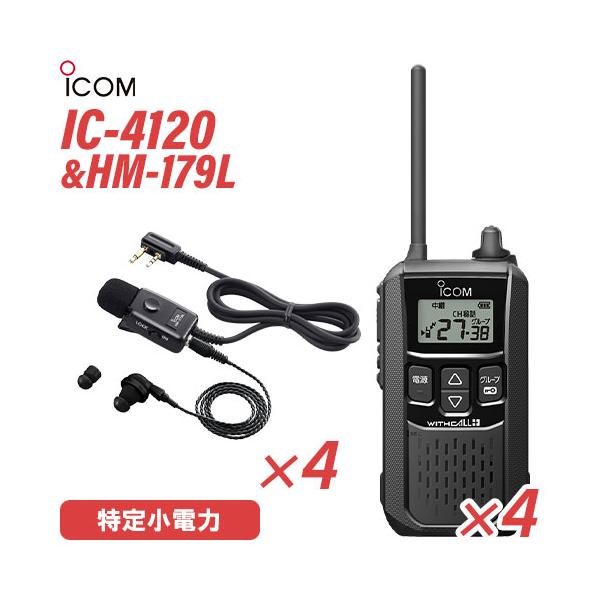 ■アイコム IC-4120(×4) ブラック 特定小電力トランシーバー + HM-179L(×4) イヤホンマイク 無線機