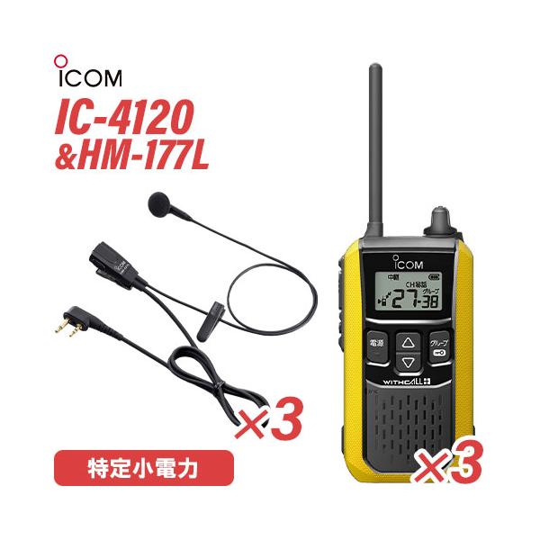 ■アイコム IC-4120Y(×3) イエロー 特定小電力トランシーバー + HM-177L(×3) 小型イヤホンマイク 無線機