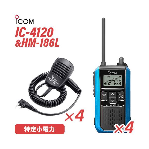 ■アイコム IC-4120MB(×4) ブルー 特定小電力トランシーバー + HM-186L(×4) 小型スピーカーマイク 無線機