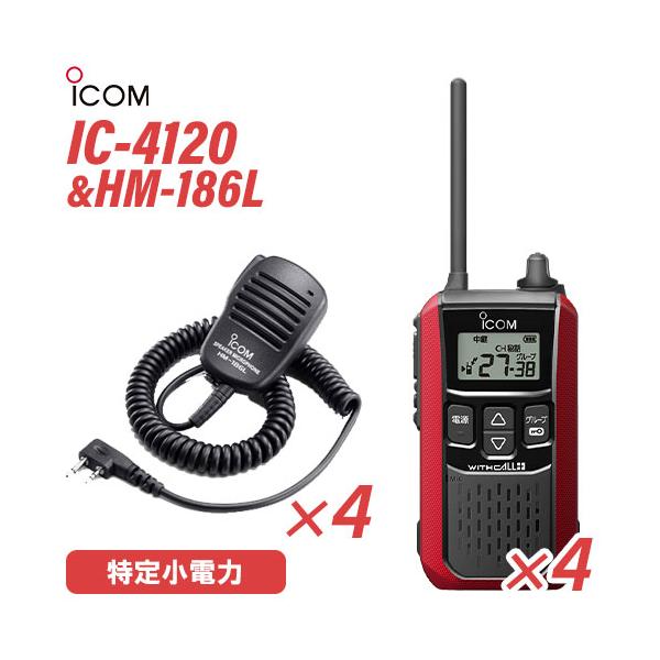 ■アイコム IC-4120(×4) レッド 特定小電力トランシーバー + HM-186L(×4) 小型スピーカーマイク 無線機