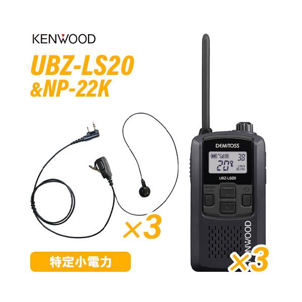■ケンウッド UBZ-LS20B ブラック 特定小電力トランシーバー (×3) + NP-22K(F.R.C製) イヤホンマイク (×3) セット 無線機