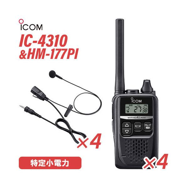 ■ICOM IC-4310(×4) ブラック + HM-177PI(×4) 小型イヤホンマイクロホン 特定小電力トランシーバー 無線機