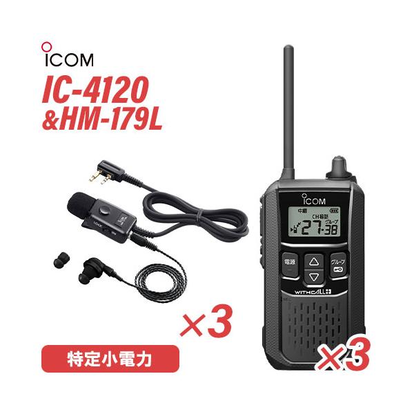 ■アイコム IC-4120(×3) ブラック 特定小電力トランシーバー + HM-179L(×3) イヤホンマイク 無線機