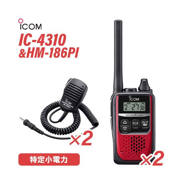 ■ICOM アイコム IC-4310 2台 レッド 特定小電力トランシーバー + HM-186PI 2個 小型スピーカーマイクロホン 無線機