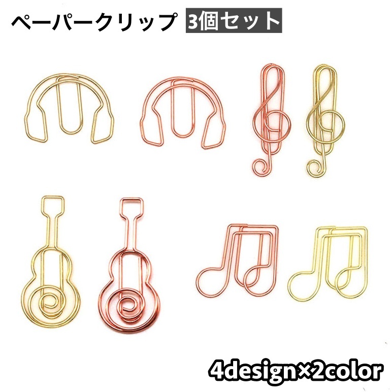 ■クリップ 3個セット ペーパークリップ ゼムクリップ 文具 文房具 音楽 音符 ギター ヘッドホン おしゃれ かわいい 事務用品