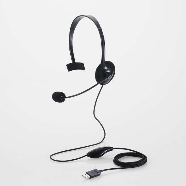 ■即納 エレコム ヘッドセット マイク付き ヘッドホン 有線 USB 接続 片耳 オーバーヘッド 軽量 小型 ミュート機能 【 Windows...