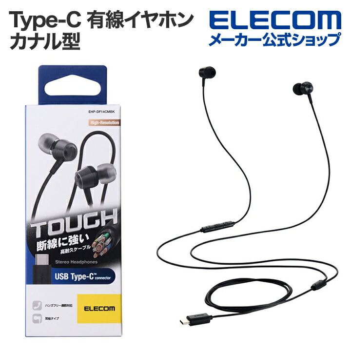 ■エレコムType-C 有線イヤホン 高耐久 デジタル式USB Type-C ヘッドホン カナル型 有線 イヤホン タイプC 10mmドライバ ブラック ┃EHP-DF