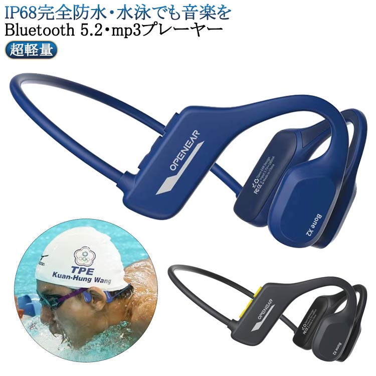 ■【IP68完全防水】骨伝導 ヘッドホン スポーツ 骨電動いやほん ワイヤレス 水泳用 ランニング ヘッドホン bluetooth5.2 mp3プレー 8GBメモ