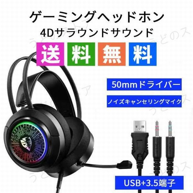 インピーダンス32Ω再生周波数帯域20Hz?20k Hzケーブル長さ:2.2m±0.1ドライバー50mmダイナミック 感度102±3DBイヤーパッド材質:レザー+低反弾力スポンジ端子:3.5mm USB高低音ウーハー内蔵LED作業電流DC5V±5%マイク感度: -38±3d Bマイクインピーダンス 2.2KΩ【7.1ch 4Dサラウンドサウンド】7.1chサラウンドサウンドを実現するために50MMドライバーを装備した高度なゲーミングヘッドセットです。衝撃的なサウンドを提供します。【ノイズキャンセリングマイク】ノイズキャンセリングマイクで、最適でクリアな音を引き出す事ができます。360度回転するマイクを採用しているので、高精度かつクリアな音で仲間との明瞭な会話が可能です。他のプレイヤーとコミュニケーションを取らずに自分だけの時間を楽しみたい場合は、スイッチを操作しマイクをオフにすることもできます。海外インポート品なので,国産商品より細かいところが不完璧の場合がございますが。商品の使用には問題がございません。上記の点で返品?交換の理由になりませんので,ご理解の上ご購入ください。